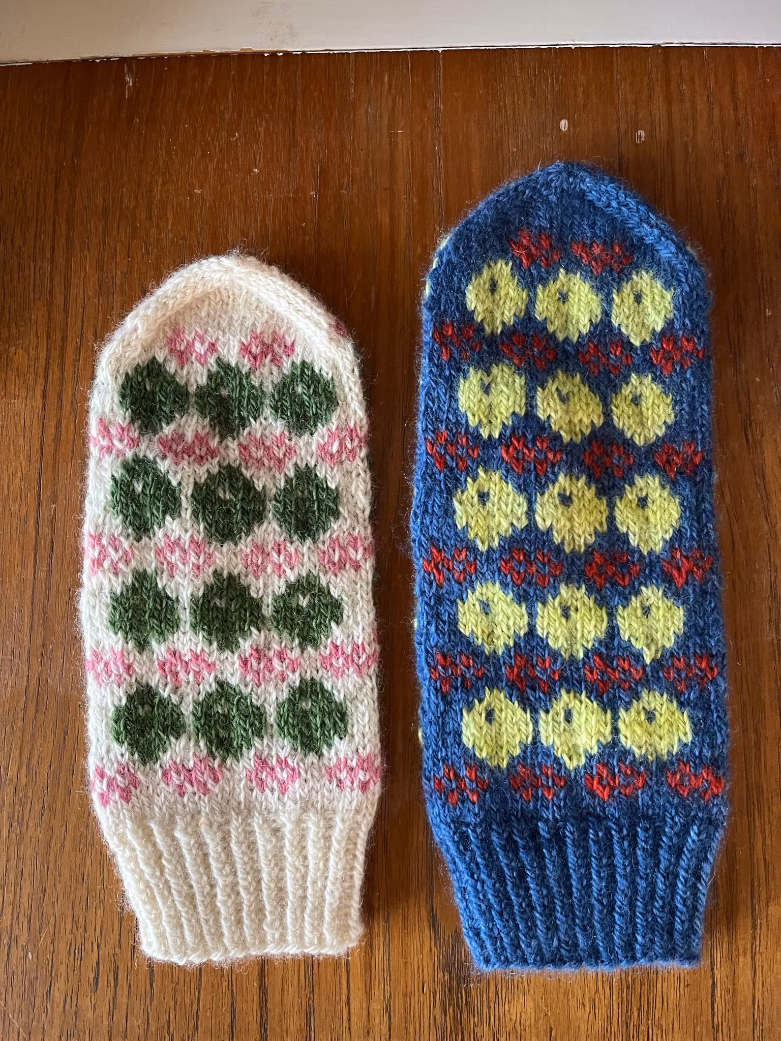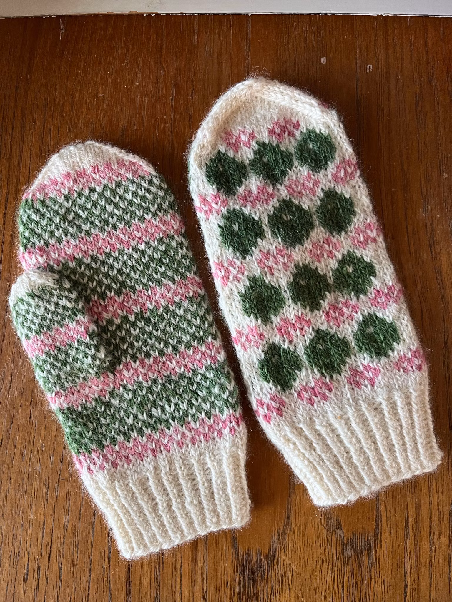 Stickor: 2,5 mm 80 cm rundsticka, 3 mm 80 cm rundsticka. Mönstret är skrivet för Magic loop-teknik. Vanten kan stickas med strumpstickor men mönstret beskriver inte fördelningen av maskor för strumpstickor.