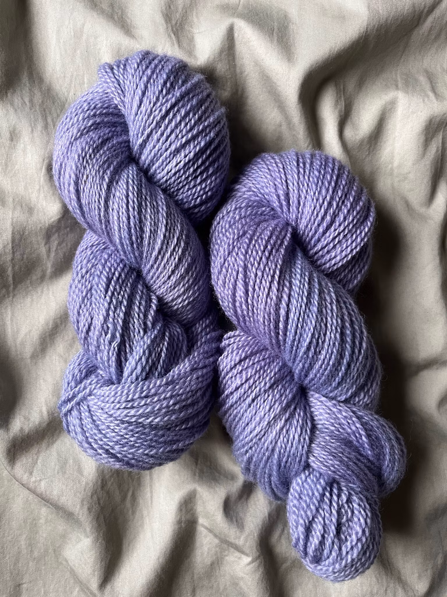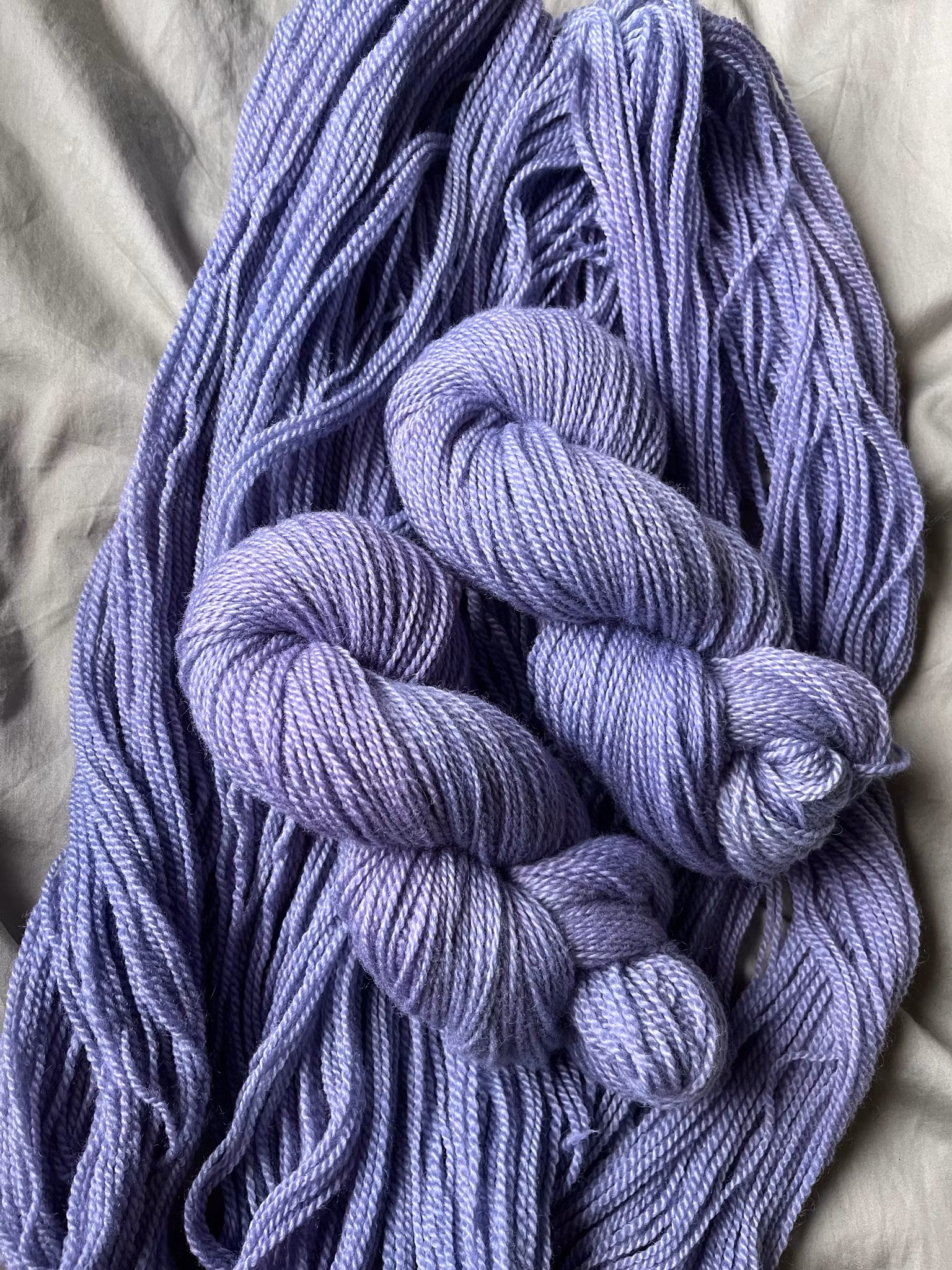 Ljuslila garn färgat på 100 % vit jämtlandsull.