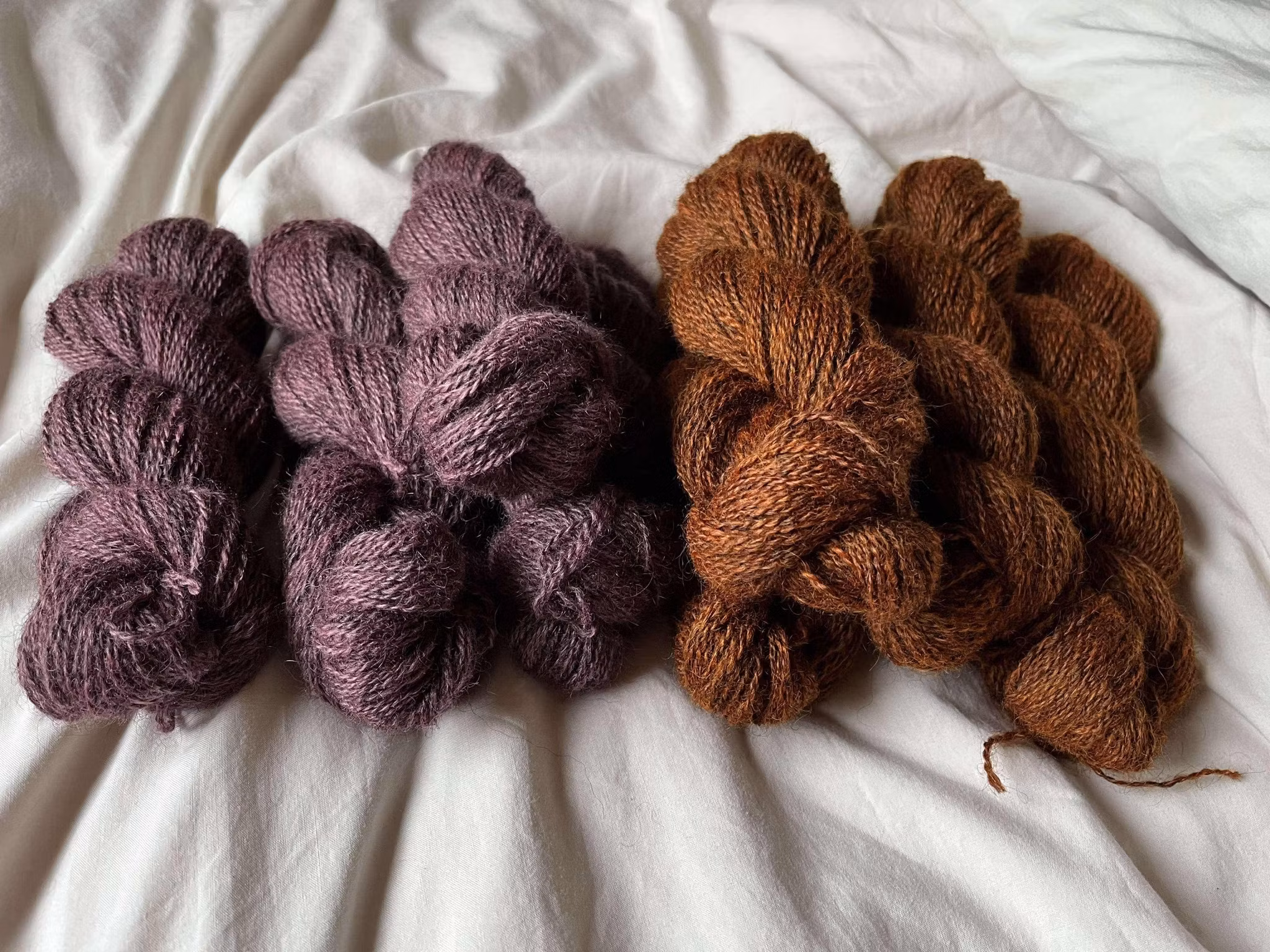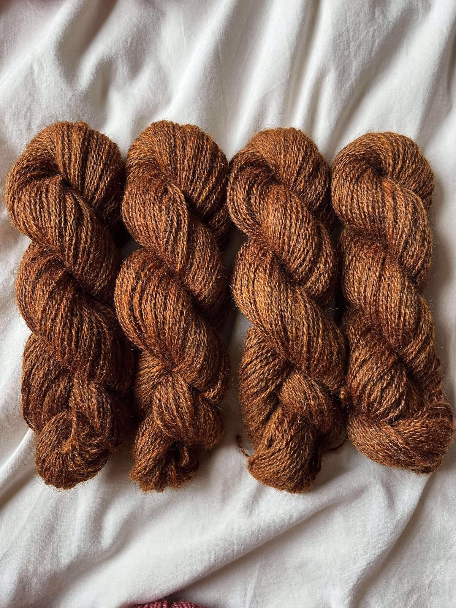 Gyllenbrunt garn färgat på 90 % gråmelerad gotlandsull och 10 % vit finull.