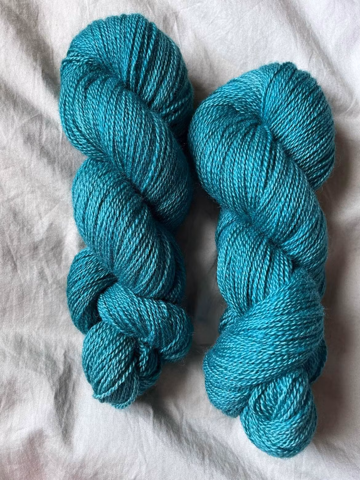 Blågrönt garn färgat på 100 % vit finull.