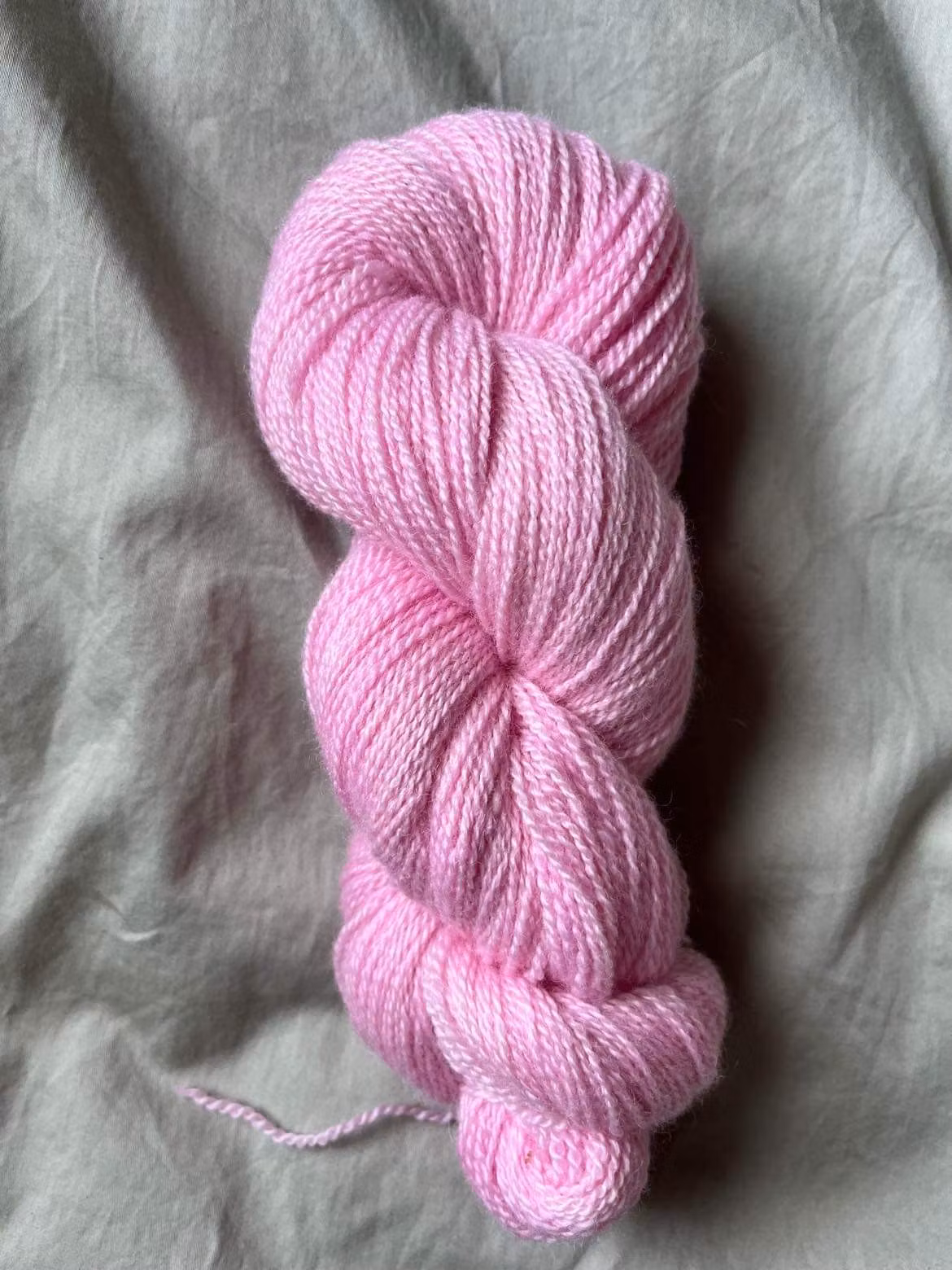 Ljusrosa garn färgat på 100 % vit finull.