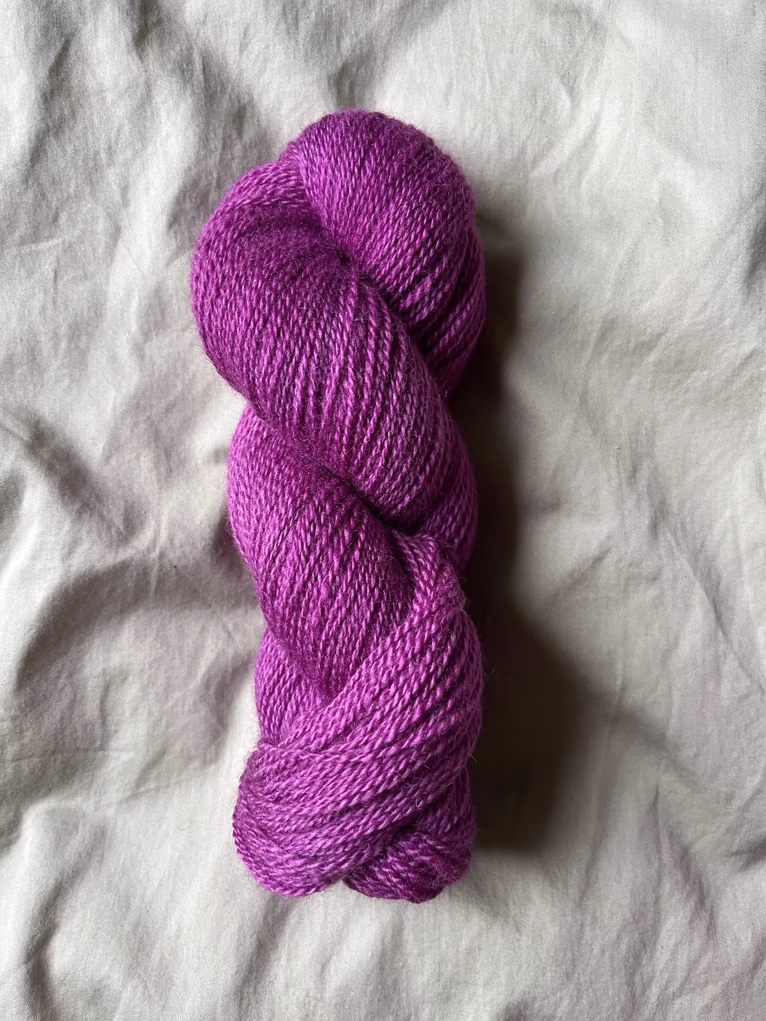 Lilarosa garn färgat på 100 % vit finull.