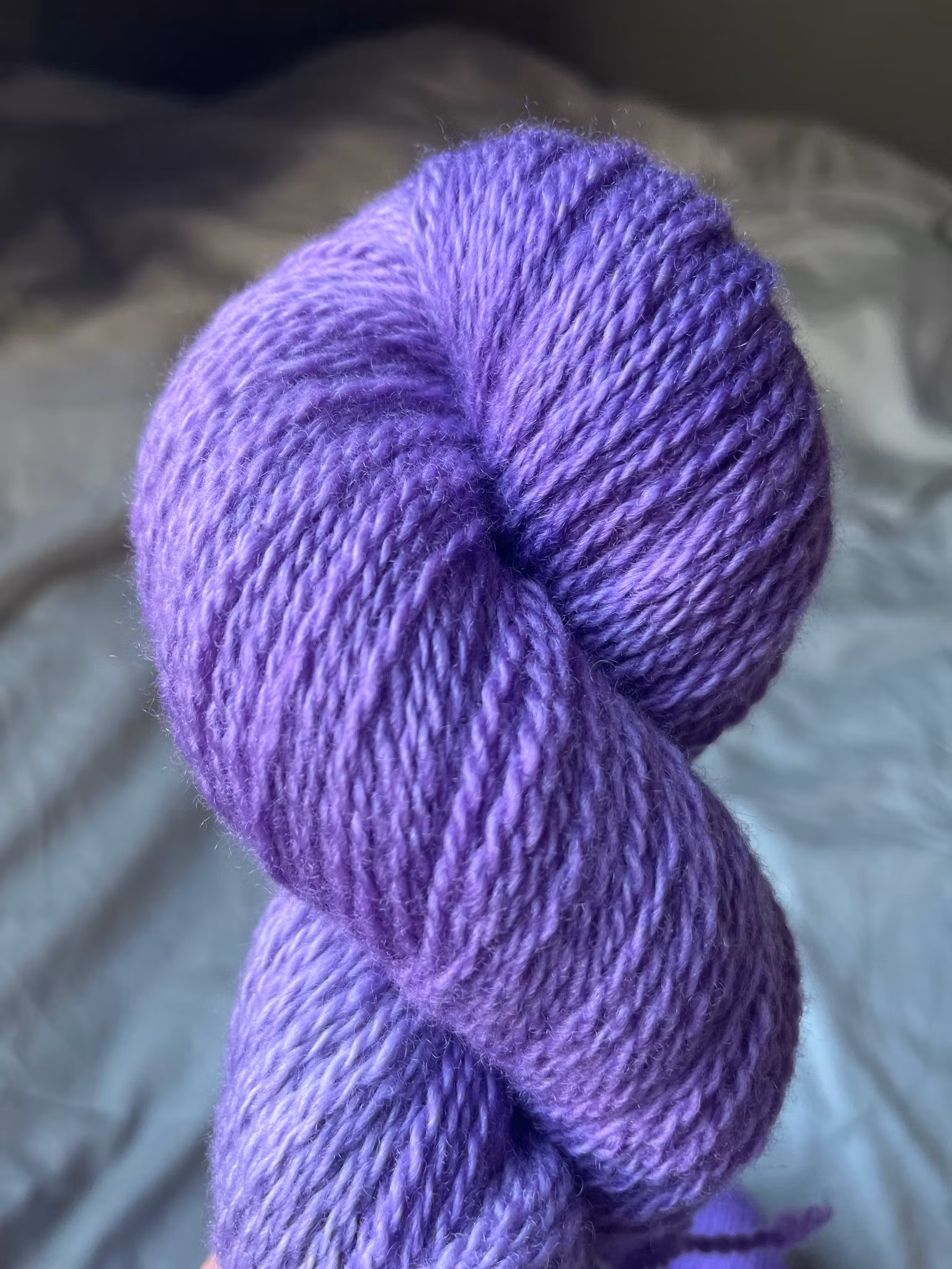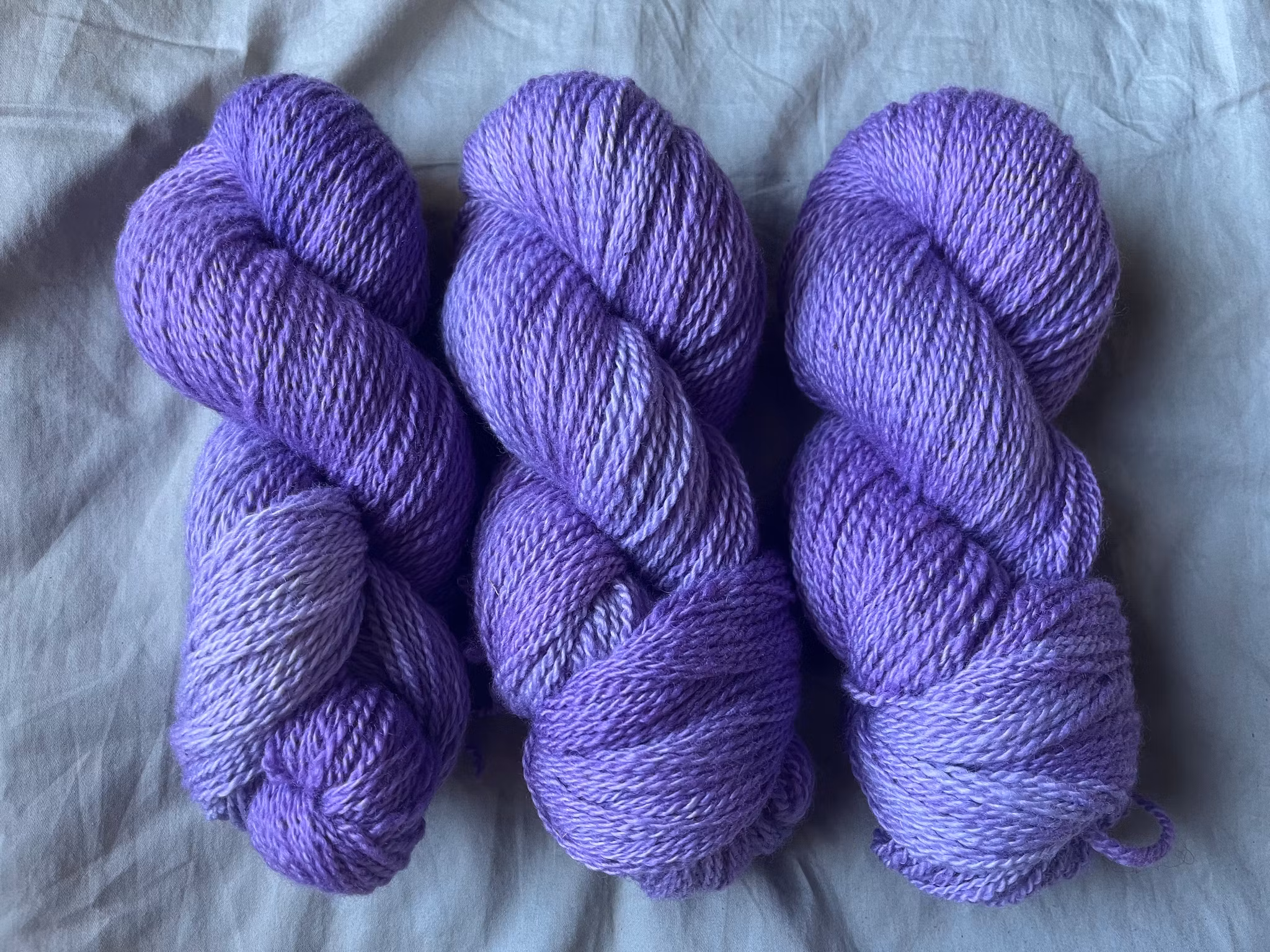 Lila garn färgat på 100 % vit finull.