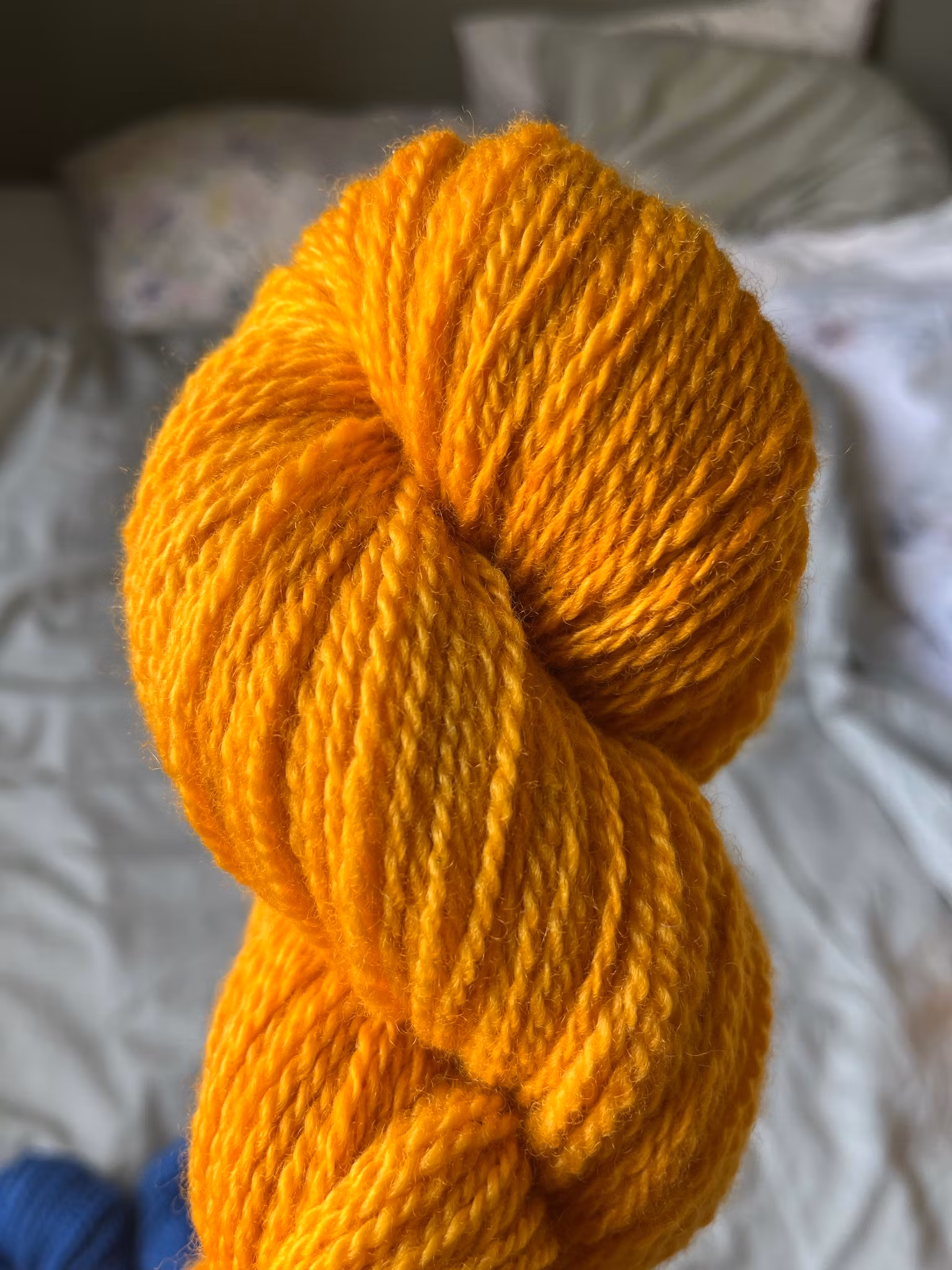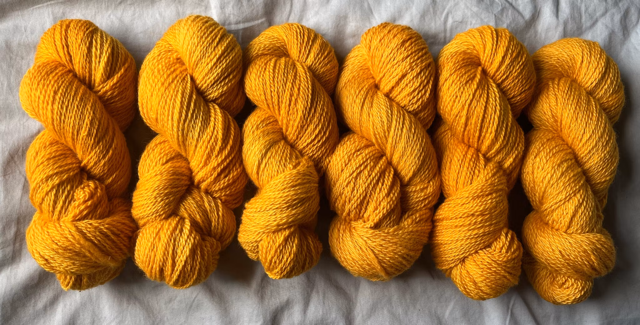 Gult garn färgat på 100 % vit finull.