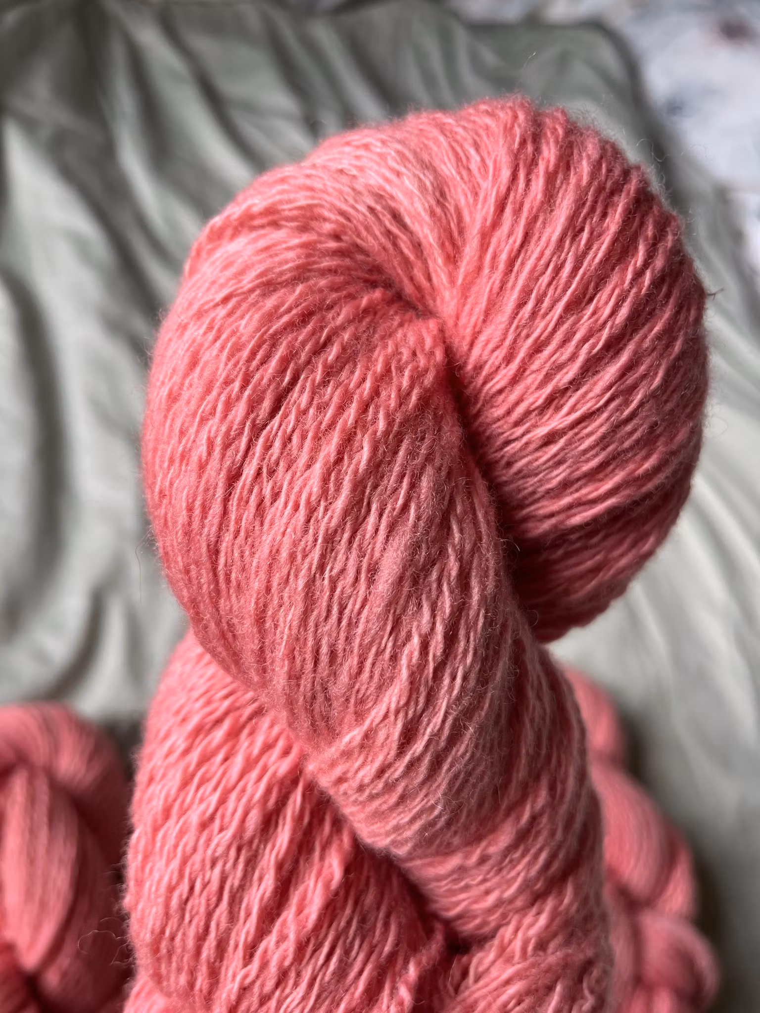 Rosa garn färgat på 100 % vit jämtlandsull.